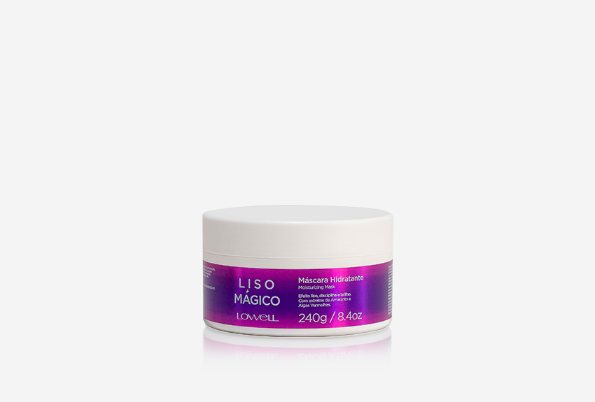 A máscara Liso Mágico é enriquecida com óleo de Amaranto e Matrix de Algas vermelhas. Ideal para eliminar o frizz, proteger contra a umidade e auxiliar no desembaraço, além de oferecer efeito desmaio, disciplina e brilho.